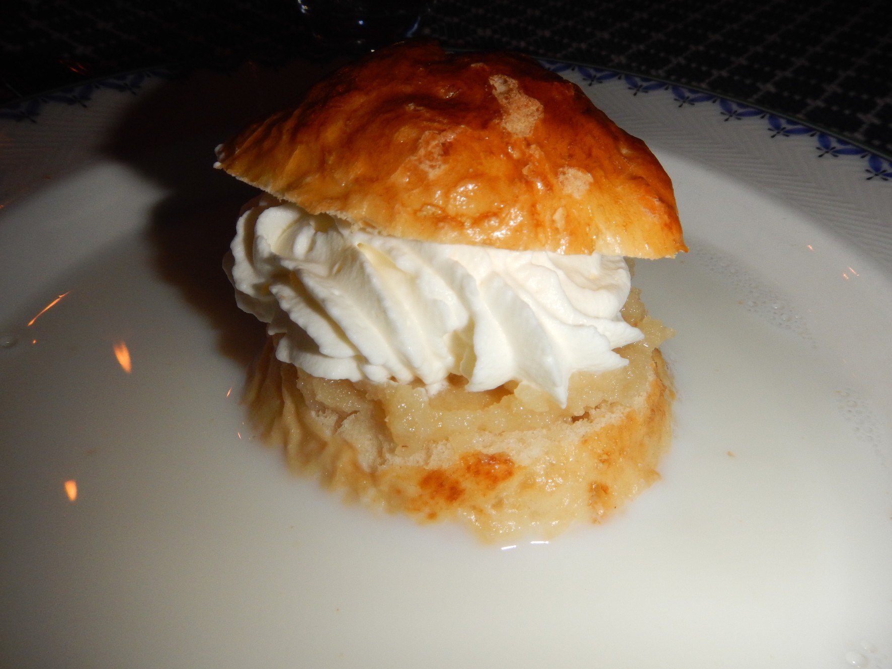 Faktum är att det var riktigt gott, kanske doftade det lite väl mycket citron när det var klart men det försvann efter en stund. För att försäkra mig om att Rolf skulle bli riktigt mätt och inte lägga märke till skillnaden mellan Fisksoppa och Pasta med citronsås blev det en liten hemlagad Semla. Dock utan florsocker nån måtta får det vara.