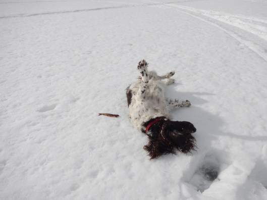 Fast vid närmare eftertanke så kanske den inte var så god. Han spottade ut den och använde den för parfymering istället. Om man rullar sig över den flera gånger så att fisklukten fastnar i pälsen, då blir matte superglad om man hoppar upp i hennes säng. Det är hundens tankar inte mattes.