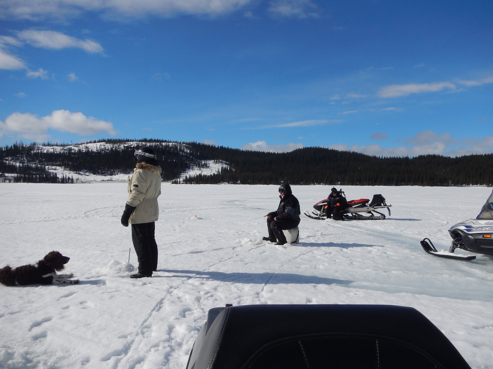 I sällskap med Bruno och Maine får vi en heldag i friska luften. Isen är dock så pass tjock att frågan är om det ryms några fiskar under den.