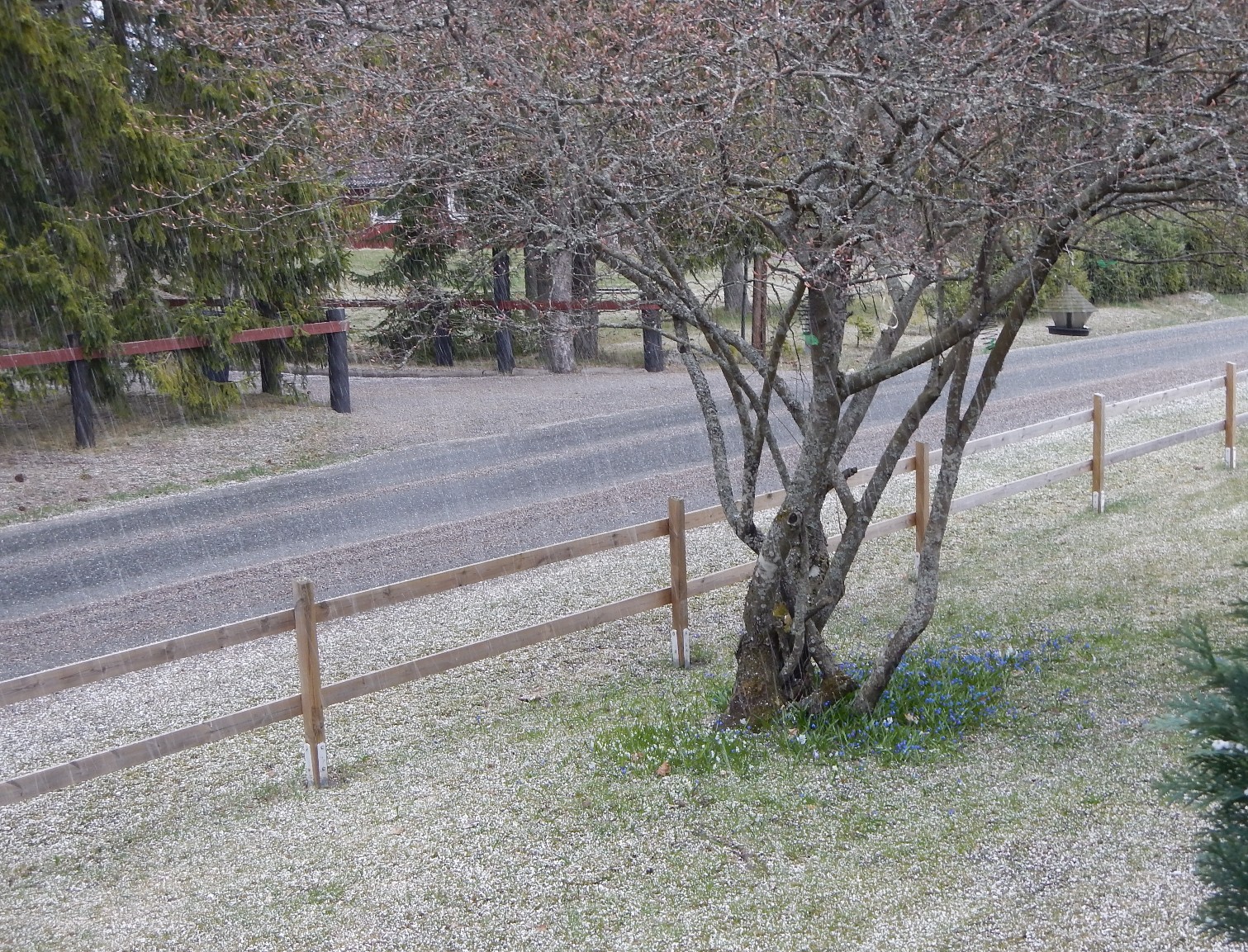 Detta fick mig att tänka på hagel, jag blev riktigt imponerad när jag såg hur stora de är och hur vit gräsmattan blev på en gång. Nu pratar jag alltså inte om den sortens hagel man använder i jakt på smådjur utan om den typen som kommer uppifrån.