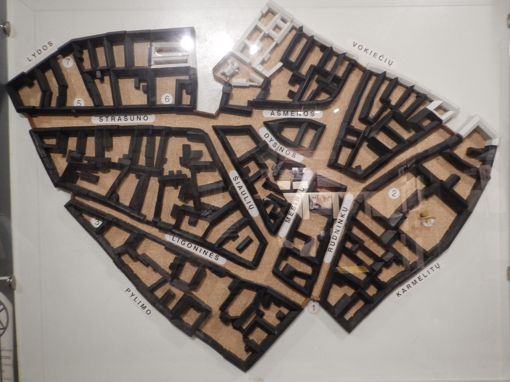 Det finns ett litet oansenligt kvarter mitt i Vilnius, okänt för de flesta. Nämligen det område där det judiska gettot legat. Under 1800- och början av 1900-talet levde den judiska befolkningen fritt i landet, före andra världskriget var det över hundratusen judar i Vilnius. De utgjorde ungefär 45 procent av befolkningen. På fotot nedan kan man se hur det var fördelat mellan gatorna. Under den första sovjetiska ockupationen började förföljelsen av judarna och det var drygt 90 procent av landets 220 000 judar som blev deporterade. När nazisterna kom började förintelsen och då bildade man getton, i Vilnius det hände år 1941.