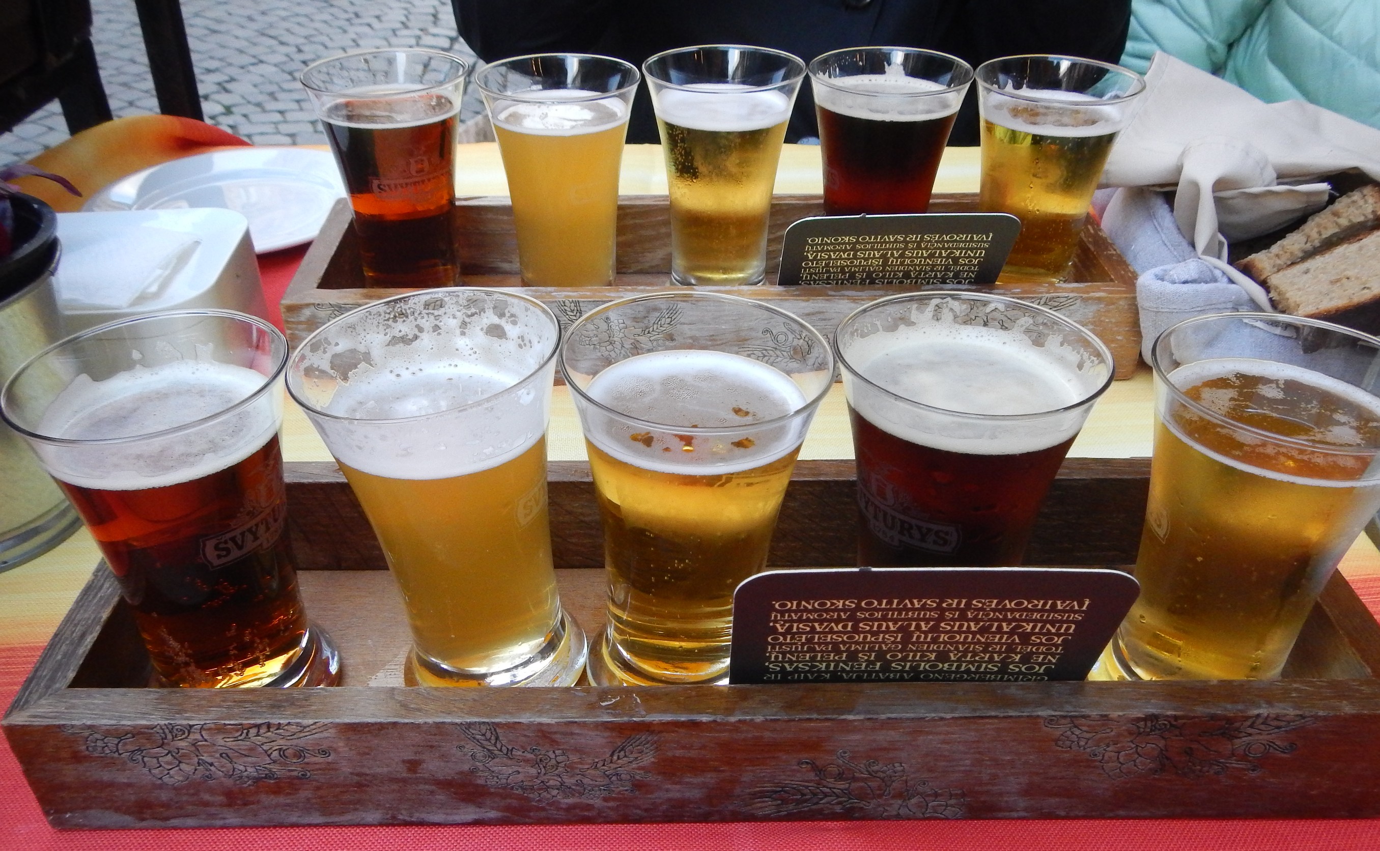 Vill man ha en öl till maten och har svårt att välja, ja varför inte prova flera. Alla lokala varianter en kul idé.