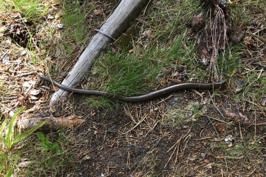 Perfekt att börja med denna plats eftersom man då får en bra kunskap om vad det är man kommer att se på resten av turen. Ganska naturligt kanske att man ska se ”Lapphyttan” innan man ser ”Nya lapphyttan” . När vi skulle gå tillbaka fick vi sällskap av en kopparorm som egentligen är en form av ödla. Vad den nu än är så gillar jag den inte, tog en bild av den i den händelse den skulle dyka upp på fler ställen under dagen. Då vet jag i alla fall var den kommer ifrån.