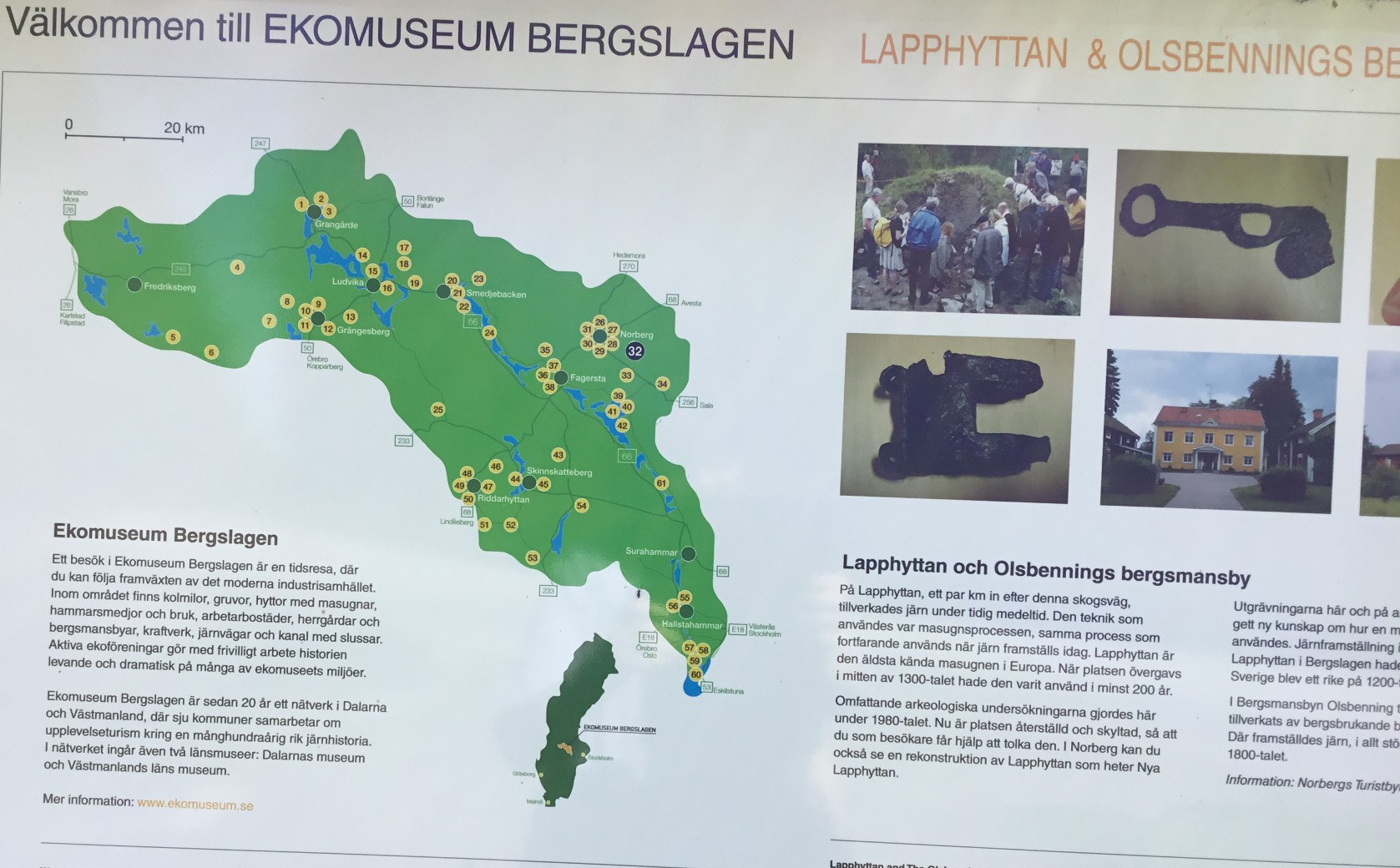 Bild med informationen om färskningshärden, det fanns tydliga informationsskyltar vid alla de utgrävda platserna.