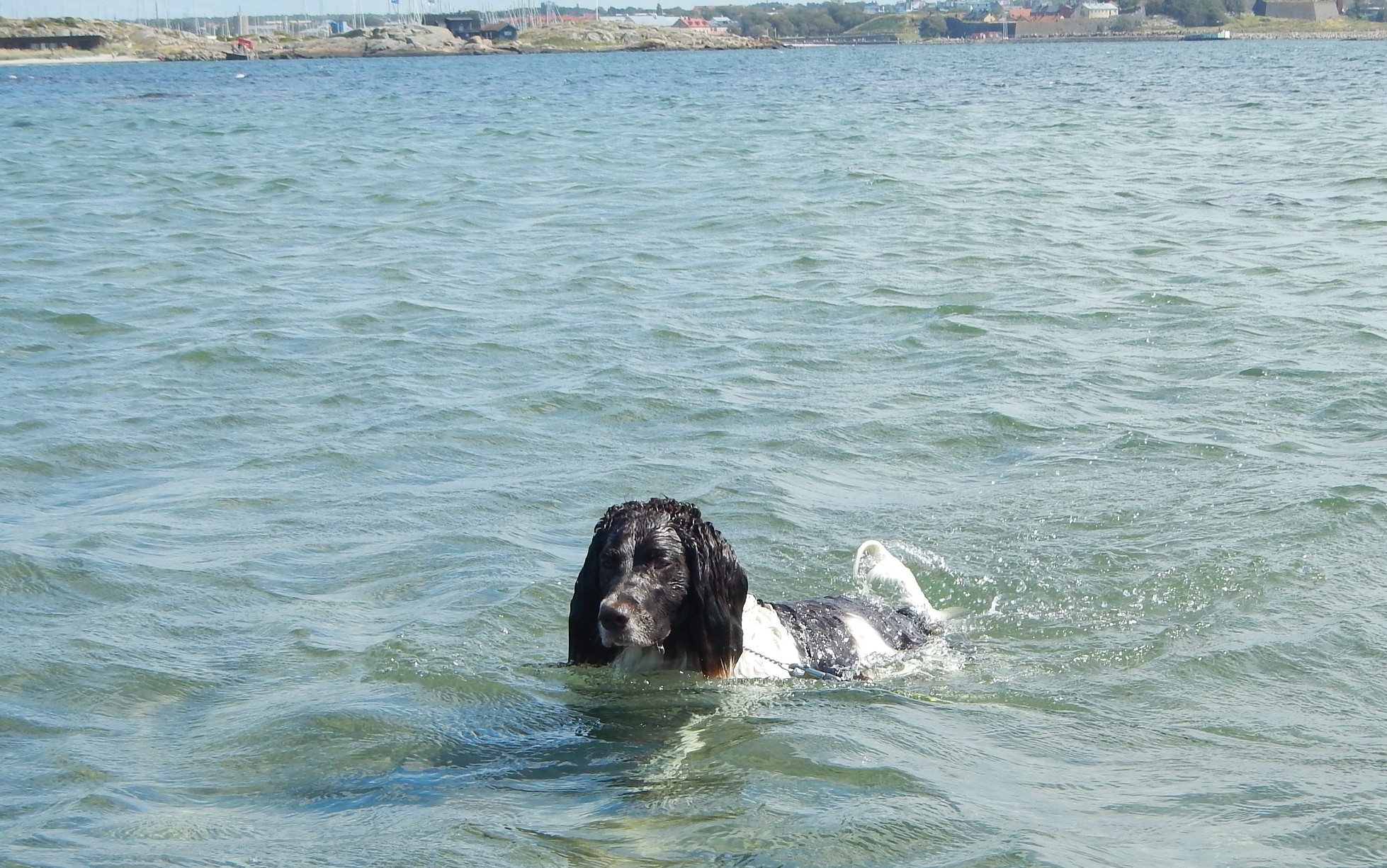 När det gäller vatten har hunden och jag samma smak, det skall vara klart, ha småsten innan sandbotten börjar och framförallt det måste finnas TÅNG och då menar jag Blåstång.