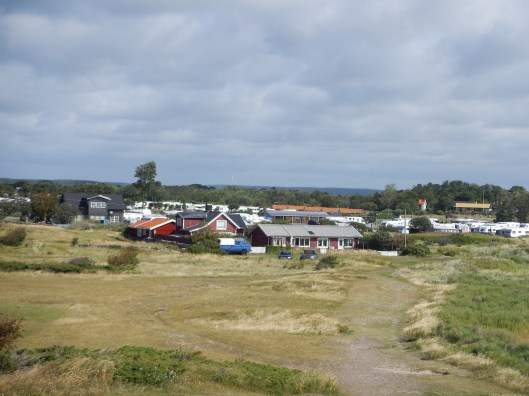 Här kan man se campingområdet som ligger bakom husen, det ser inte så stort ut vilket beror på att det är välplanerat, de enskilda platserna är rejält tilltagna.