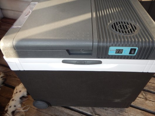 Vilken tur att vi köpte den här kylboxen, det är bara ett aber, så länge den är kopplad i bilen är temperaturen OK men när den står i förtältet går temperaturen upp till 15 grader. Inte bra, dessutom står det i instruktionen att man inte bör köra den mer än tio timmar åt gången. Problemet är ju att instruktionen ligger i lådan och den öppnar man inte förrän efter man tagit hem den. Fördelen med boxen är att man kan ha varm mat i den men vad hjälper det oss och våra smör o mjölkprodukter. För bra för att vara sant alltså.