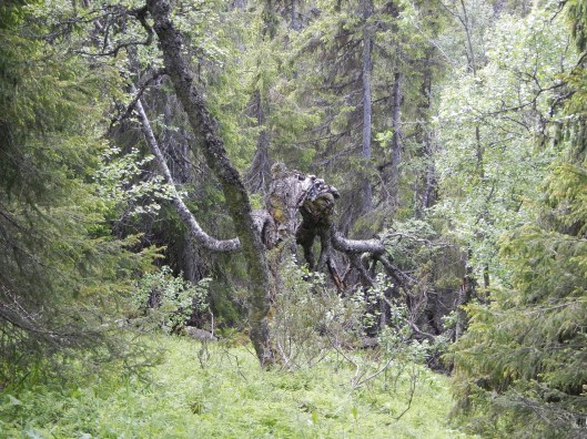 Av någon anledning kom jag sist i ledet och vid ett tillfälle fick jag se det här konstigt formade träd o trädrot. Såg lite kusligt spökligt ut och jag vill itne se det vid skymningen.
