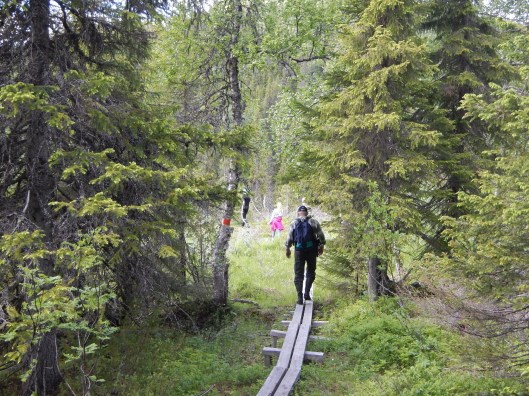 Det finns väl ingenstans som naturen skiftar så fort som i norr, speciellt i fjällområdena. Jag har tittat lite på mina bilder från i somras när sonen och två barnbarn var här, vilken skillnad i färger och aktiviteter. De ville ta en liten vandringstur och självklart ville jag haka på. Det bestämdes att vi skulle gå till Sutme sameviste. Här har det bott samer i minst tvåhundra år, och Sutme räknas in i det sydsamiska området. Den huvudsakliga sysselsättningen för samerna var renskötsel, de skulle vallas, ses till, mjölkas och hela tiden måste man byta platser för att få bra tillgång till matEnklast är att man åker till Sutme stugby och där börjar sedan vandringsleden. Leden går efter Slipsikån. Det är lätt att tro att man skall följa åkanten men icke, här handlar det om höjdskillnader och inte ens sju vilda hästar skulle få mig att klättra ner till ån. Min koncentration gick åt till att hålla mig på vandringsleden.