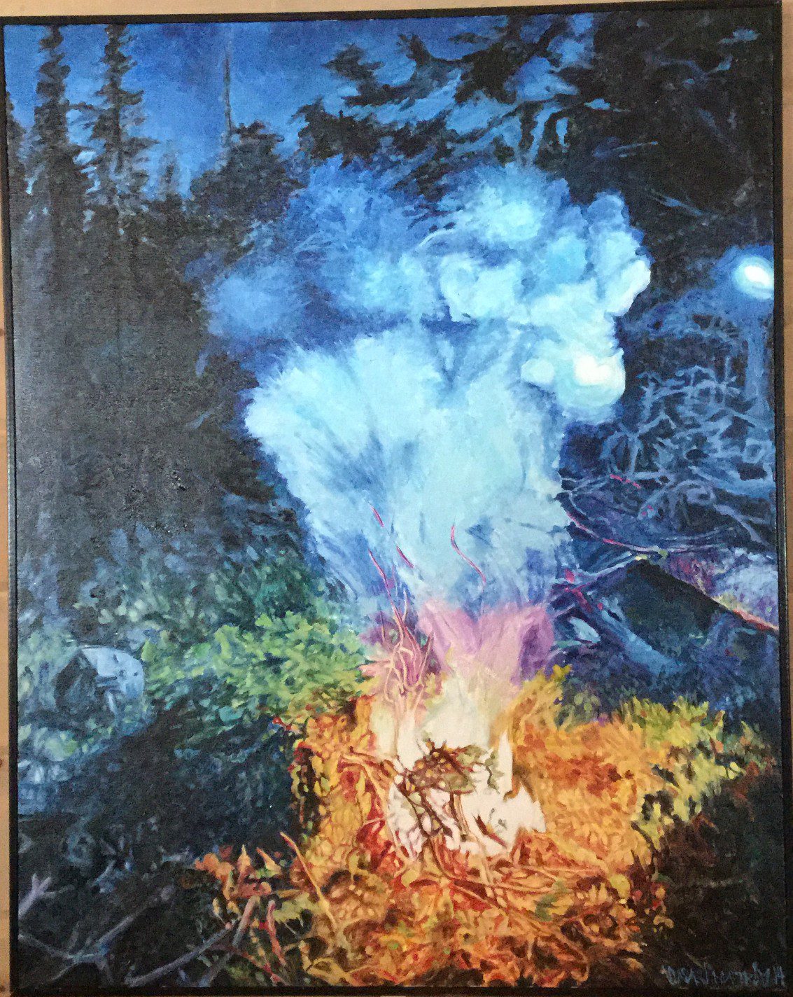 På den här tavlan kan man titta länge, det ena motivet efter det andra dyker upp. Jag tycker den är stämningsfull man känner såväl värme som kyla när man ser på den.