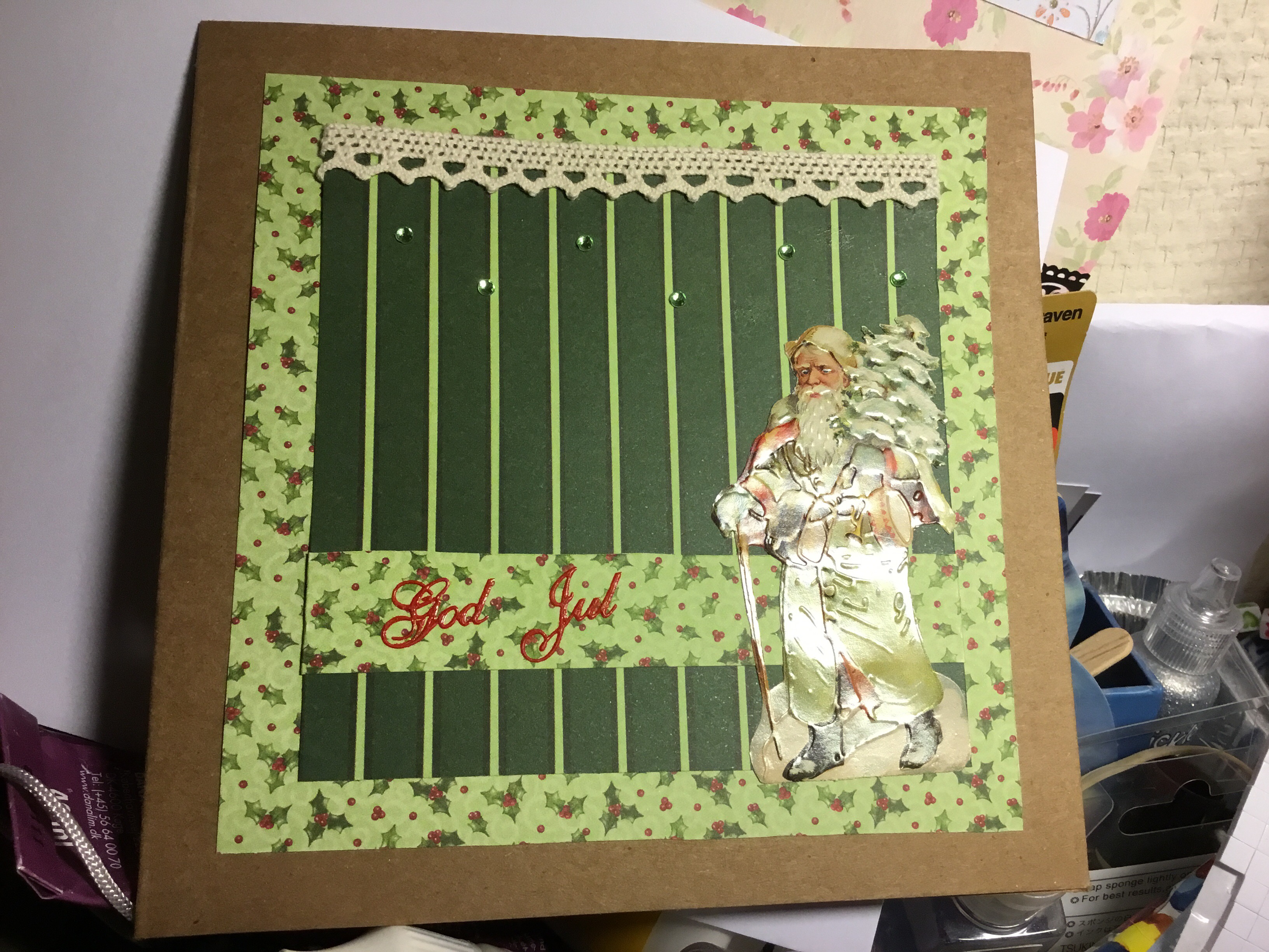 Nu har jag varit lat en hel månad dvs jag har inte skrivit någon blogg däremot har jag gjort en förfärlig massa saker av olika slag. Men nu är det slut på sötebrödsdagarna (som min mormor brukade säga). Vi går ju med stormsteg mot mörkret men faktum är att det är bara någon månad innan det börjar vända igen. Fast jag klagar inte, gillar det här med mörker, tända ljus och allt glitter inne och ute. Julstöket är klart och nu ska vi njuta av värmen ett tag t o m julkorten är färdiggjorda, skrivna, frimärken på och överlämnade till grannen som lovat lägga dem på posten.