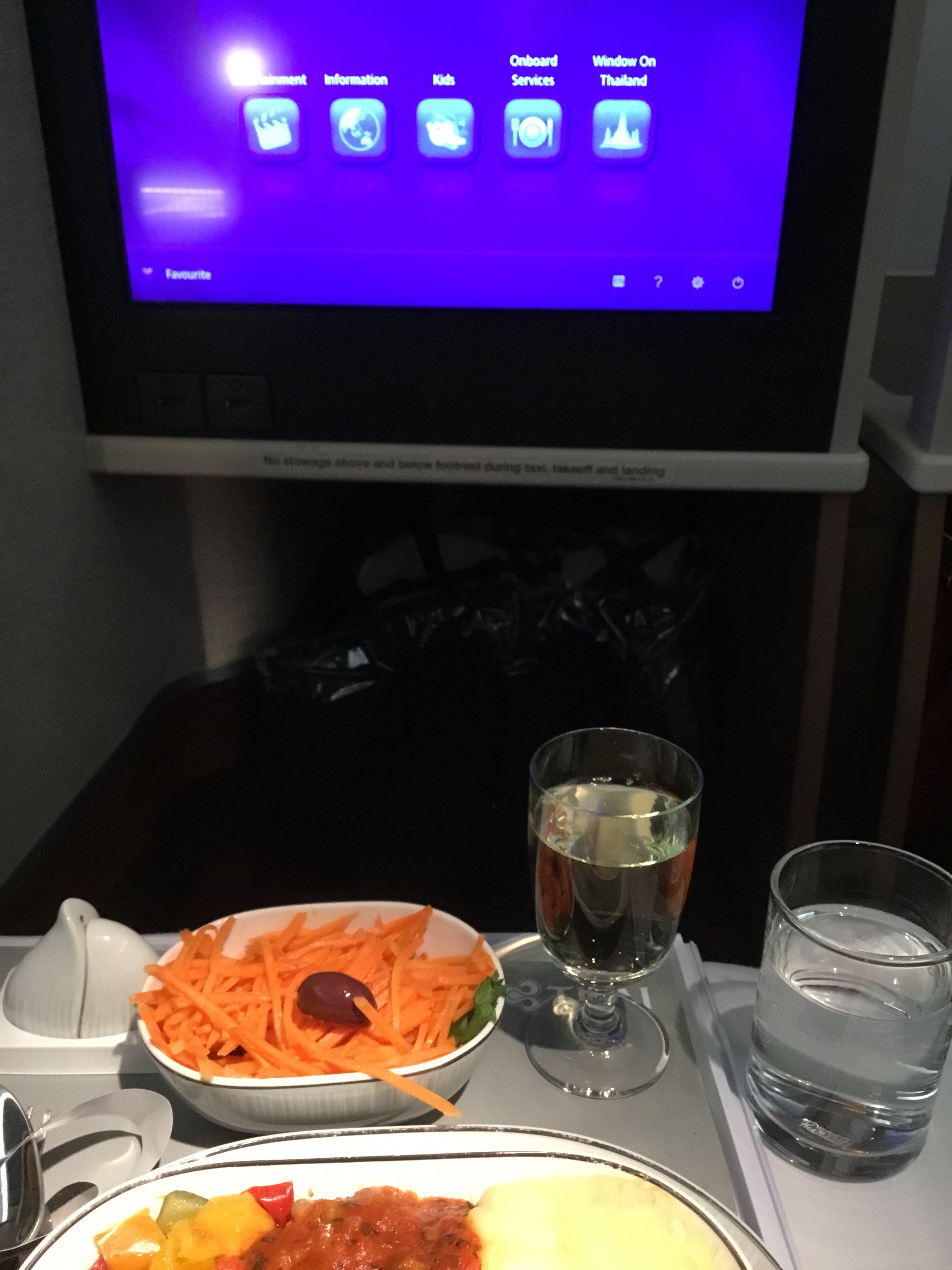Så får man inte göra hemma, sätta upp fötterna och titta på TV medan man äter. Här är det tillåtet och efter avslutad måltid planade jag ut stolen, la mig ner med täcket över mig. Lyssnade lite på en bok, ” Skrik tyst så att inte grannarna hör”. Har inte hört den klart men den verkar bra. Vaknade av att det var frukost och sedan var vi framme. På flygplatsen i Bangkok skulle vi leta reda på en taxi och vid en serviceplats för ”limousin o taxiservice” erbjöd dom att köra oss för 1400:- THB in till centrum. Lät på tok för högt så vi tog hissen till gatuplan och kön för ” public taxi”. Priset blev 450:- THB inkl två avgifter på motorvägen.
