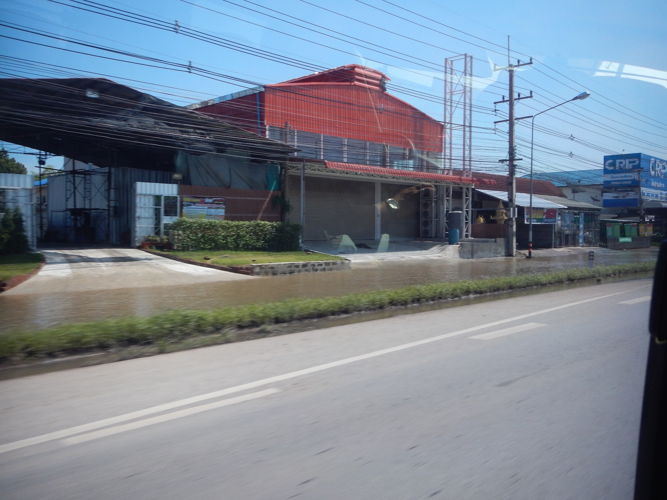 Helt plötsligt fick vi se lite rester från det ihärdiga regnandet för några dagar sedan. Bland annat stod en man nedanför sin lastbil och vattnet räckte upp till halva vaderna på honom.