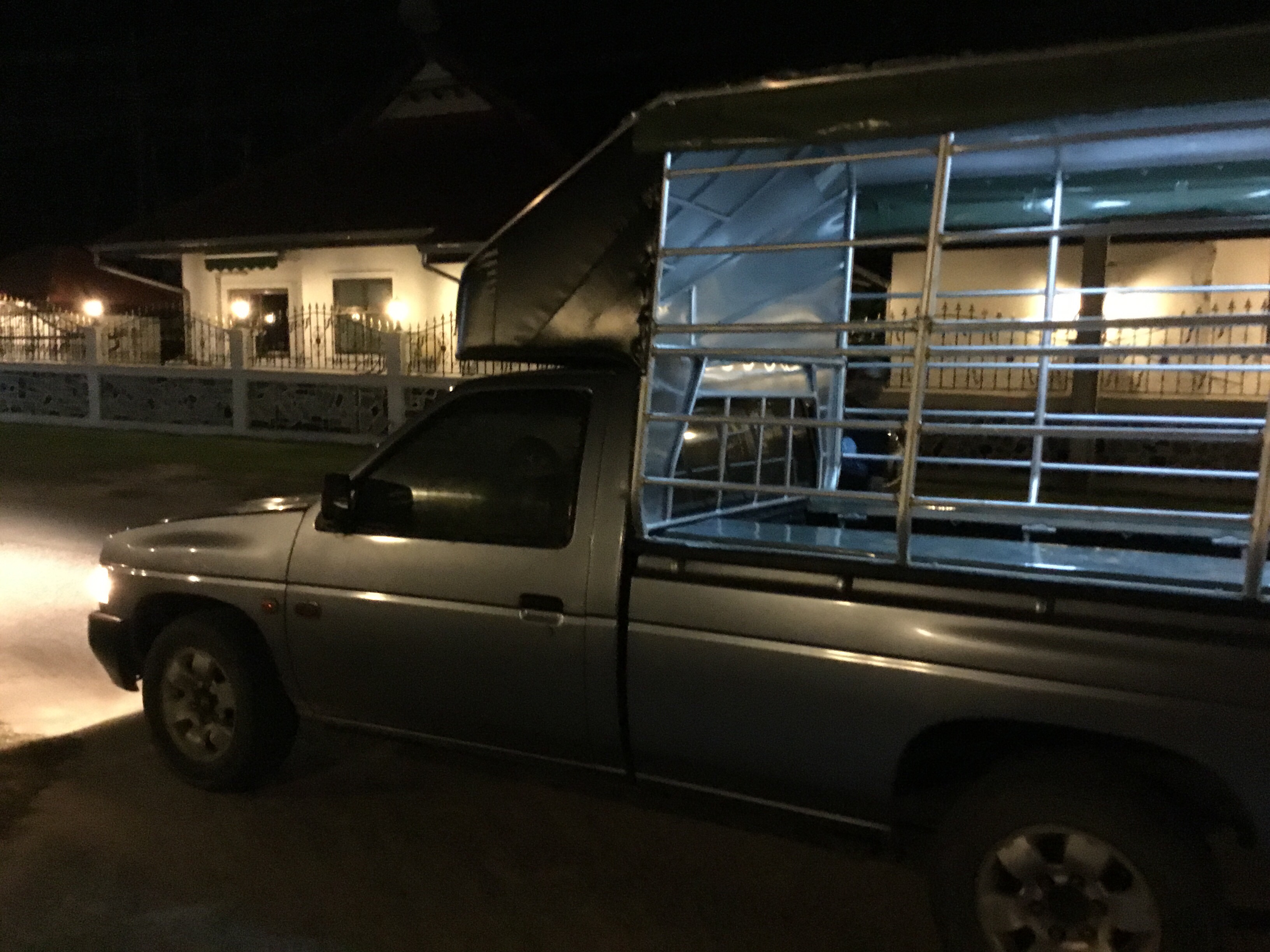 Komforten i bilen är väl inte den bästa men det är inte så långt och kvällen är varm så det är skönt med bra ventilation.