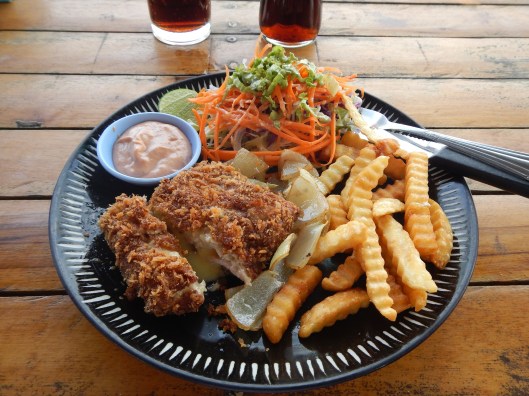 Rolf tog en form av skinksnitzel fylld med ost o skinka, även den bra.
