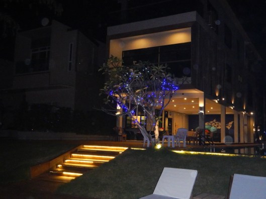 När man väl kommit in genom entrén möts man av den vackra poolen. Det finns flera på området och den här kvällen var det ”förmodligen” ungdomar från Bangkok som hade en riktig härlig weekend där. Det plaskades och lektes.