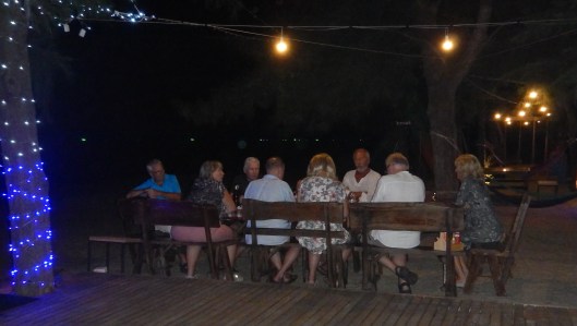 Vi valde att gå en trappa ner från restaurangen för att sätta oss vid ett bord som var placerat i sanden. Härligt att höra vågskvalpet.