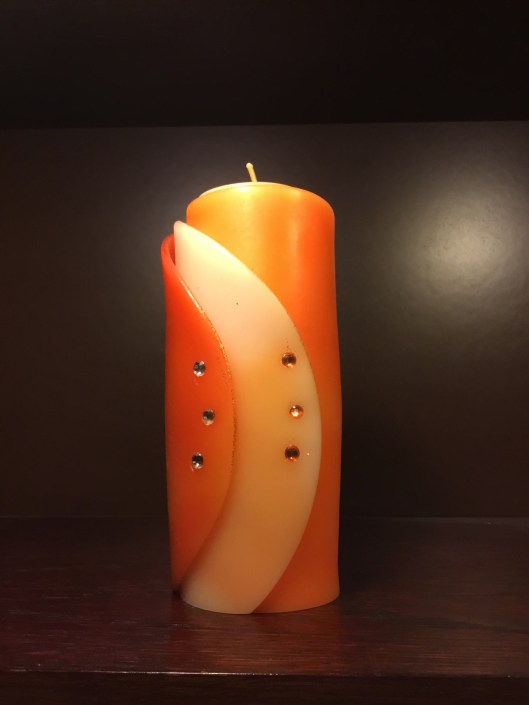 Vi fick ett så vackert stearinljus i julas fast ju mer jag tittar på det desto mer tvekar jag att tända det. Det gör sig så bra som det är så det fick bli vanliga Liljeholmens kronljus. Ja jag Ikeas då om man ska vara så noga. Det här får stå kvar och glädja oss med form och färg ett tag till.