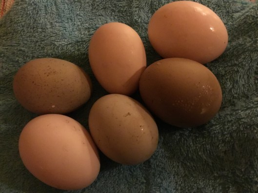 Ibland får man lite små överraskningar och här ser ni en, grannen som bor lite längre bort på vägen kom med sex ägg.