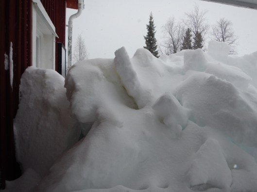 Det börjar dra ihop sig för hemfärd meningen var att vi skulle varit kvar i Lappland ett par dagar till. Vädret började dock visa sig långt ifrån den ljusa sidan, dessutom började lite av den snö som fanns på taket börja dra sig oroväckande långt ut mot takkanterna.