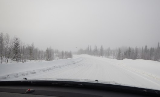 Det hade varit oväder hela dagen, blåst och snöfall dessutom väntades det bli runt -20 grader C under natten. Det blev därför snabbpackning, det var bara ett aber nämligen tänk om det blir värre under natten. Vi beslutade att Rolf skulle köra ner all packning till bilen och därefter köra in skoter och släde i boden. Vi vågade inte riskera att göra det nästa morgon eftersom risken för att snön skulle rasa från taket var stor, gissa om han hade fått stå och skotta framför ”garagedörren” då. Rolf ville sedan ha bilnyckeln han gett mig, ja kära nån det var ju 8 dagar sedan inte mindes jag var den var. Vi letade igenom hus och bil flera gånger men den förblev borta. Måste säga att han behöll lugnet och var nöjd med att han åtminstone hade sin nyckel kvar.