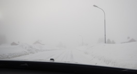 Här åker vi igenom metropolen Risbäck. Här bor en av våra vänner som faktiskt tidigt på morgonen ringde oss för att kolla om vi kunde ta oss ut och om det gick att köra. Han stod beredd att komma till undsättning, det är goda vänner det.