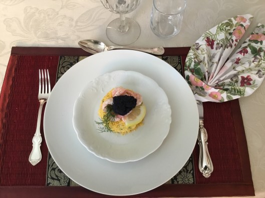 Naturligtvis blev det färska jordgubbar med marscaponekräm att avsluta det hela med. Nu har ni fått ett bra tips till en festlig sommarmiddag.Gissa om vi var tvärmätta i flera dagar efteråt.