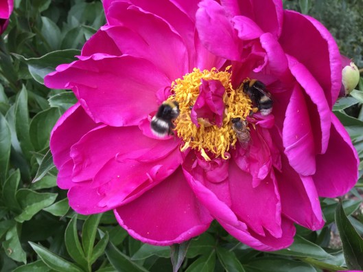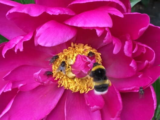 Att så många och så olika insekter äter på samma blomma samtidigt har jag inte sett förut. Det kan vara upp till 3-5 humlor samtidigt.