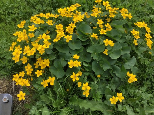 När vi åkt en bit såg vi att det överallt växte en gul blomma och det visade sig vara Färöarnas nationalblomma, Kabbeleka. Den har vi i Sverige också men jag har aldrig sett den växa så kraftigt.