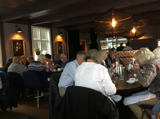 Det åts och pratades och ljudnivån var hög, gruppen med reskamrater var lagom stor 28 stycken så man hann att prata och lära känna varandra bra. Och som vanligt stötte man på vänners vänner.