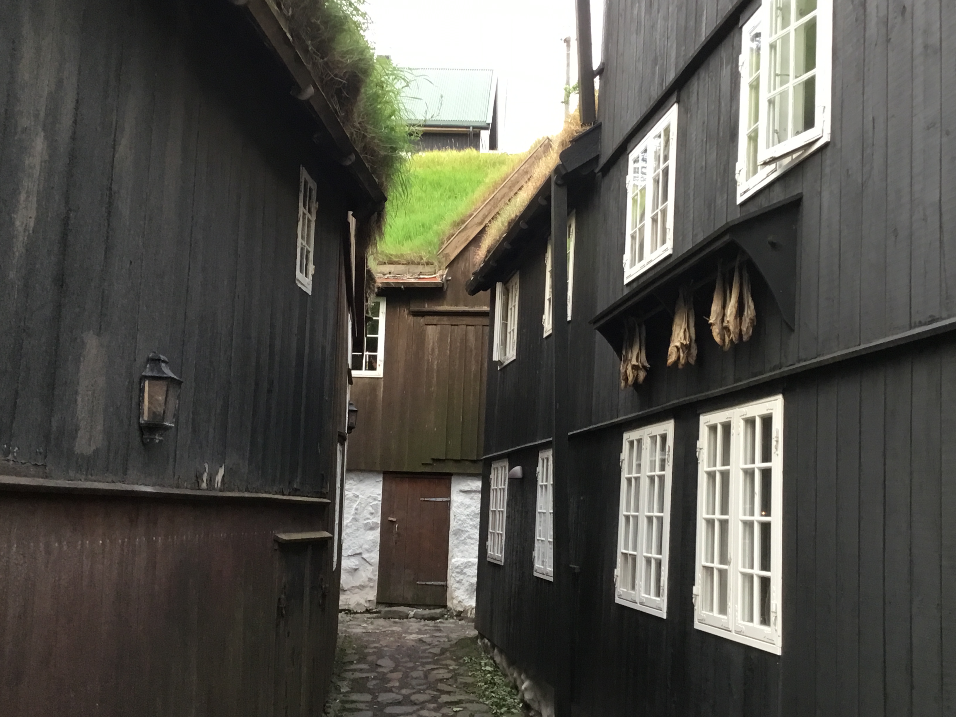 I gränden mellan restaurangbyggnaderna kunde man se fisken hänga på tork.