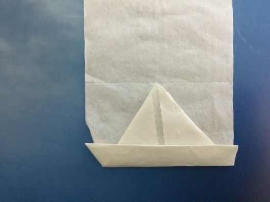 Även toalettpapperet viktes på ett sjömannamässigt vis, i form av en segelbåt.