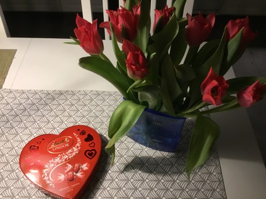 Eftersom jag inte firade denna vändag när jag växte upp har det inte blivit någon form av tradition hos mig. Lite överraskad blev jag idag när morgonkaffet serverades tillsammans med en hjärtformad ask med choklad. Rolf var dock lite brydd när jag tackade för den. Antagligen var orsaken att jag igår kväll sa; från och med nu och ett par månader framöver ska jag inte äta en enda bit choklad, godis, kakor etc. Med undantag för på söndag då ett barnbarn fyller år och jag hoppas på hembakta semlor. Tänk så tokigt det kan bli.