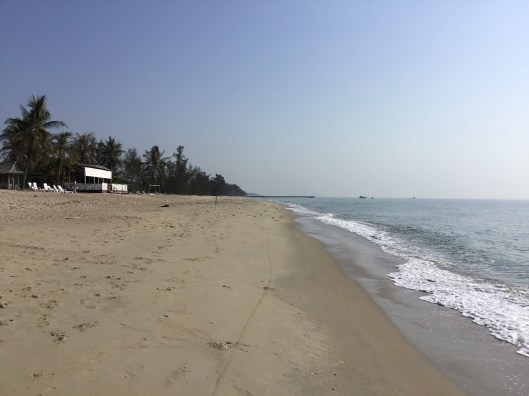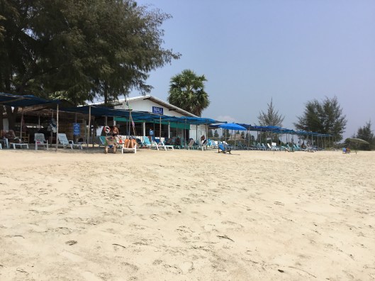 Stranden är hur lång som helst trots att jag gått en hel del efter den har jag aldrig lyckats komma till ” vägs ände”. Här ser man Nong Phu restaurang, där är det trevligt att sitta och äta samtidigt som man lyssnar på vågornas skvalpande.