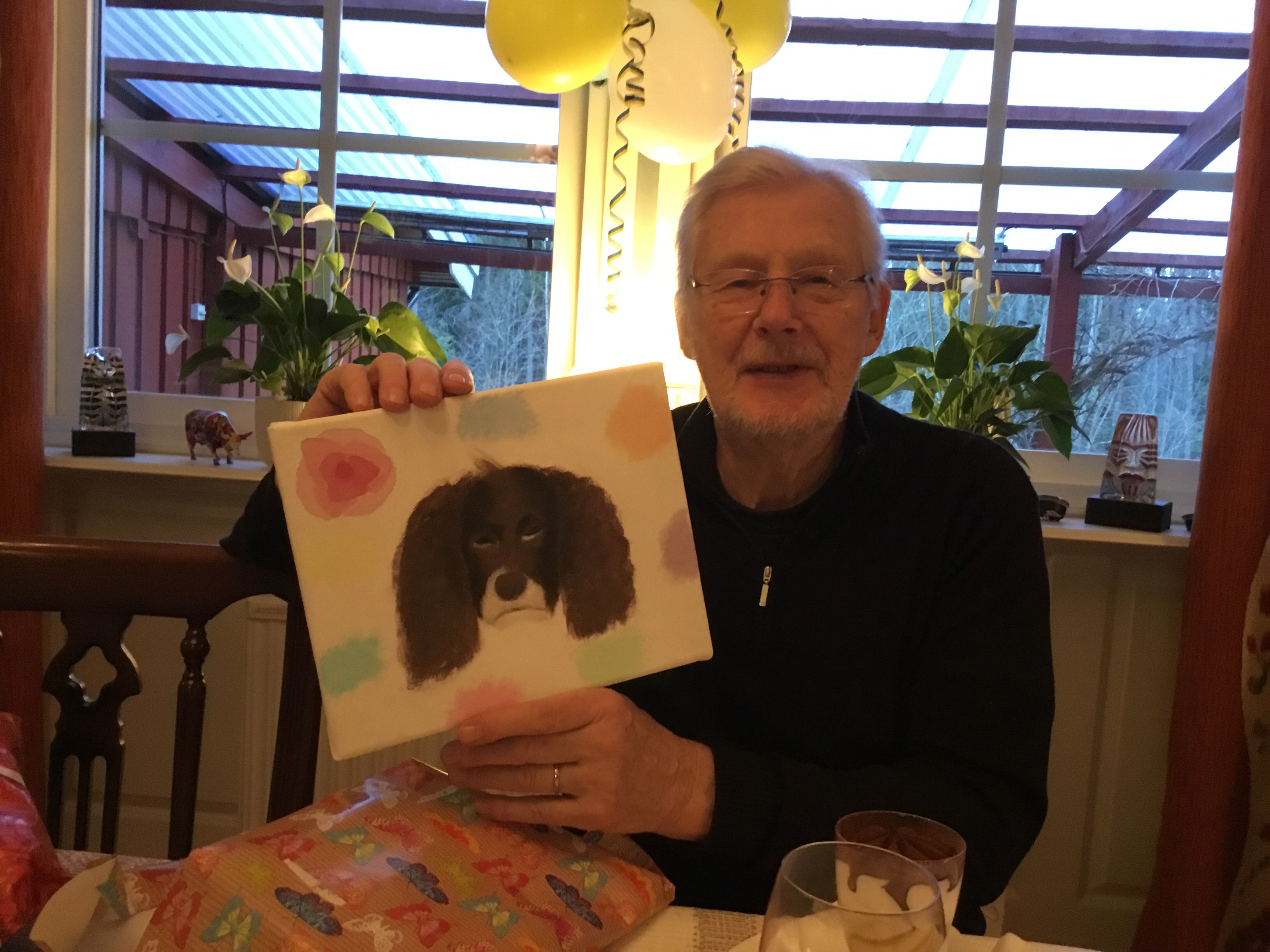 Detta blev en favorit, älsklingshunden förevigad av ett barnbarn. När en födelsedag kan bli så trevlig trots isolering, ja då ska vi säkert klara av några månader till i synnerhet som vi går mot ljusare tider. Hoppas vi.