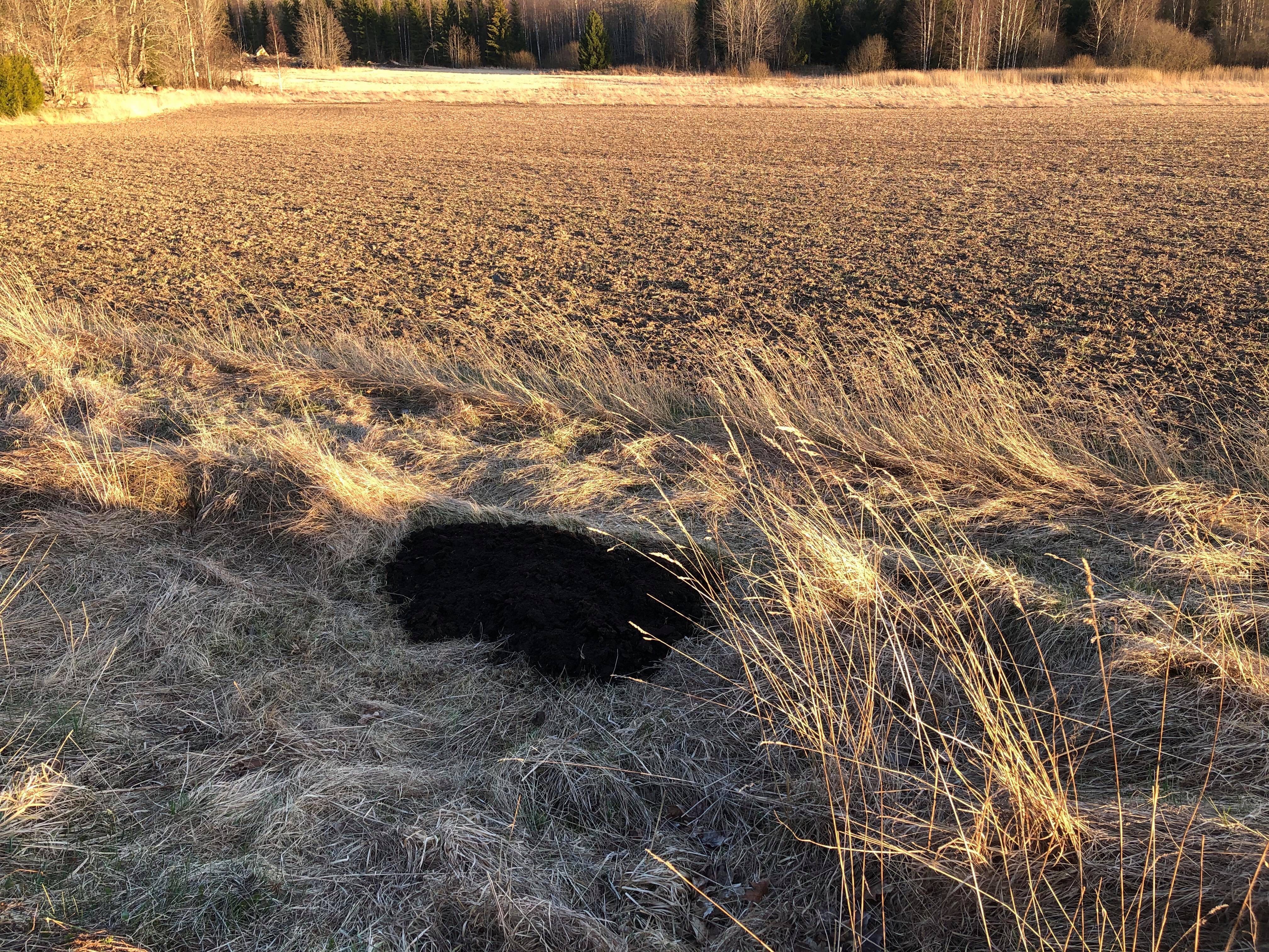 Men helt plötsligt visade Rolf mig stora mörka jordhögar spridda lite här och var efter vägkanten. Lite för stora för att vara sorkar och för lika för att vara spår av vildsvin, så vad var det?? Jo det visade sig att det var ordförande i vår vägförening som lagt ut jord och satt blomsterfrön bland annat fjärilblomma, ska bli väldigt intressant att se den. Kan inte minnas att jag sett någon. Ett väldigt trevligt initiativ i synnerhet för alla 70+are som är ”isolerade” i sina hus och går på ensamma promenader. Det är klart att man kan säga hej till någon man möter men det blir på 5-6 meters avstånd. Nu har vi något vi kan följa från frö till blomster, ska bli intressant. Ja det finns mycket man kan göra som enskild för att förgylla många andras dagar.