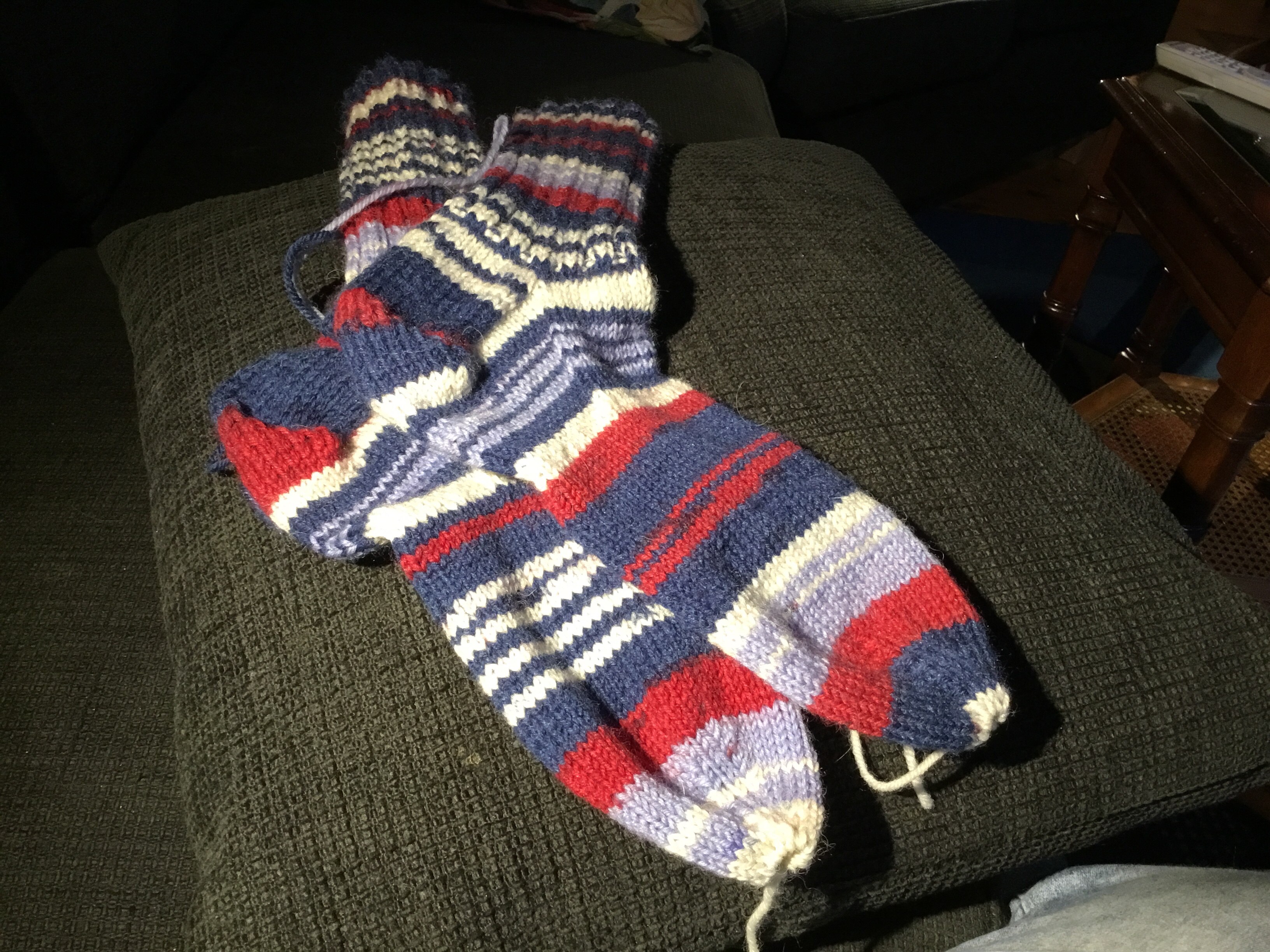 Då det varit lite regntungt ute så blev det en brasa i spisen och jag stickade färdigt ett par sockor.