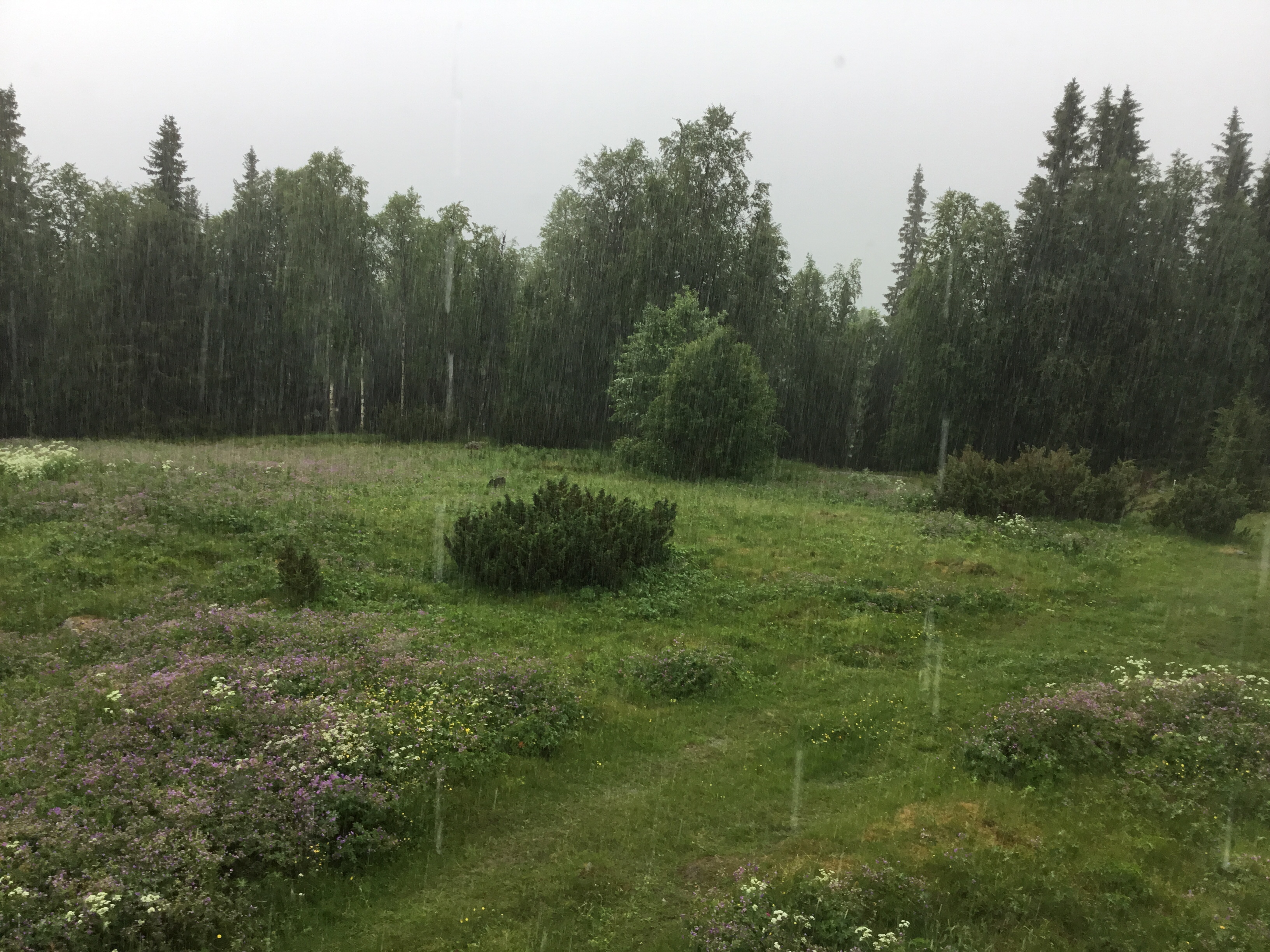 En av anledningarna till myggens återkomst var antagligen det regnväder som kom vid lunchtid. Det var ett rejält sådant och faktiskt efterlängtat, började bli lite orolig för hur det ska gå med alla bär som just börjat sätta kart. nu hoppas vi på att resten av sommaren ska bli lika härlig som den visat sig hittills.