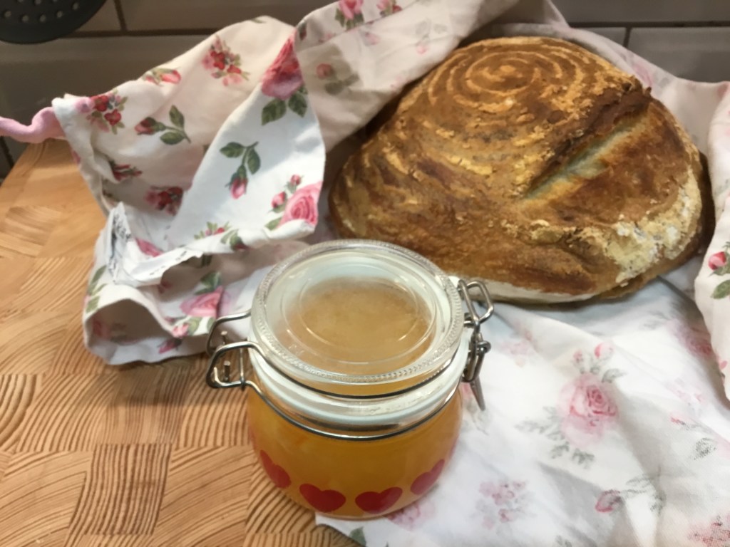 Därefter lät vi hundarna springa lösa på åkern innan vi gick hemåt igen. Rolf gjorde upp en brasa så blev det kaffe med tilltugg. Vi har njutit av det hembakta brödet med hemgjord apelsinmarmelad som vi fick på julafton av ena barnbarnet. Inget går upp mot hemgjorda julklappar och hon kan verkligen både baka och laga mat.