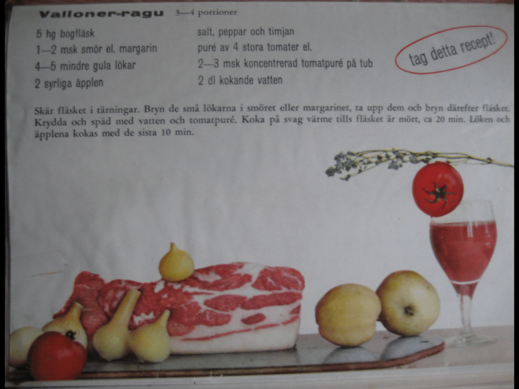 För ett tag sedan fick jag en trevlig kommentar om ett recept jag lagt ut för något år sedan. Det visade sig nämligen att personens mamma hade lagat den för många år sedan. När jag läste det blev jag sugen att låta det bli dagens middag. Det var nämligen Valloner-ragu.