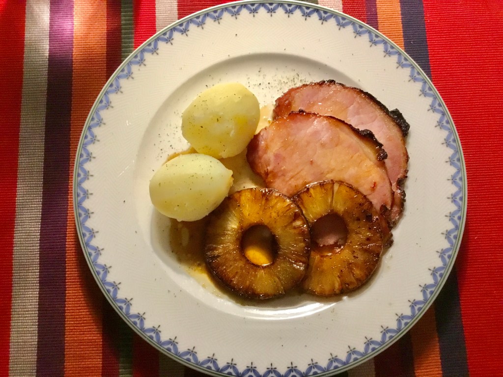 Vad blir det till middag? Jo honungsglacerad kassler och ananas.
