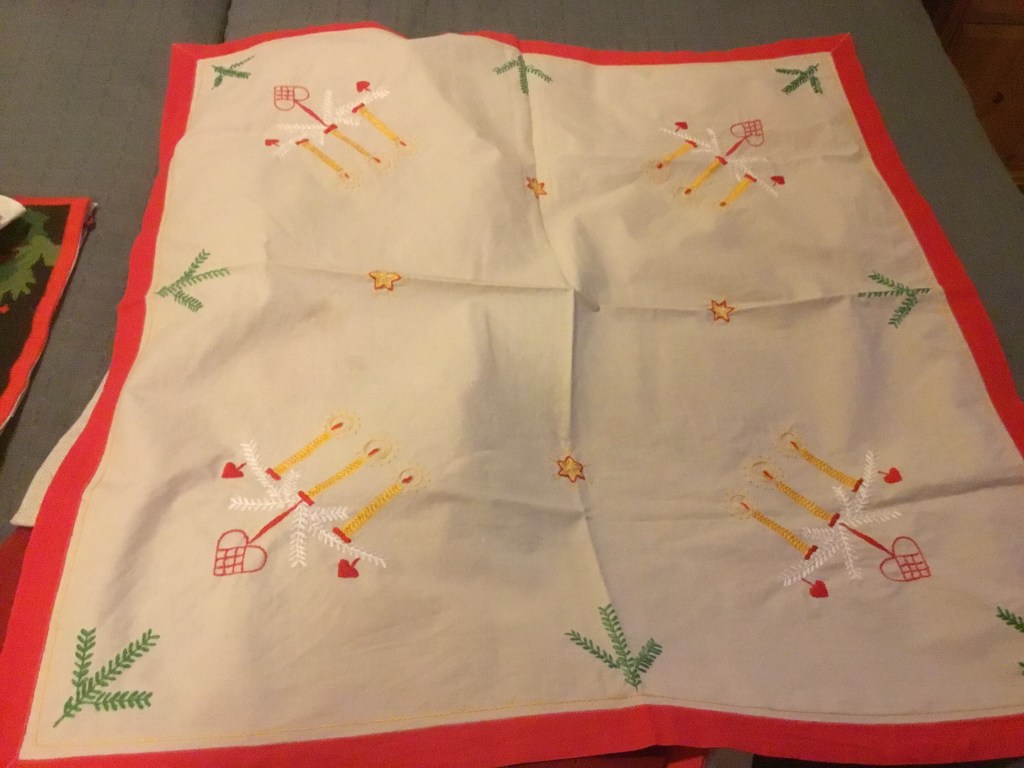 Idag när jag rullade ihop en julduk tänkte jag, den här är säkert sydd på nån syjunta. Då började jag fundera på vad syjunta egentligen var för något. Det finns många namn för denna tillställning, syjunta, syförening, och riktigt högtidligt nämligen kyrkans syförening. Det senare var en sammankomst där damerna träffades och sydde olika handarbete som kunde säljas på en årlig auktion. Meningen med detta var att man på så sätt kunde samla in pengar till kyrkan som i sin tur kunde skänka dem till välgörande ändamål. På dessa träffar var det brukligt att man drack kaffe och det skulle sjungas psalm och prästen skulle säga några väl valda ord.