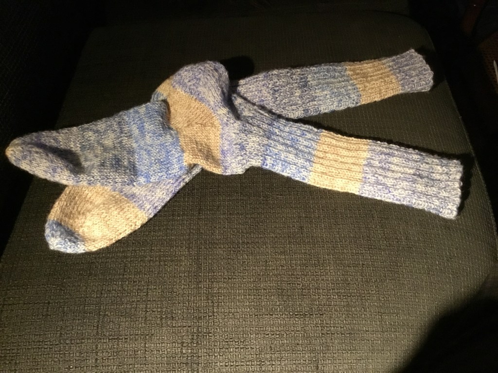 Vintern är väl den tid då garnnystan och stickor åker fram automatiskt, något måste man ju göra under långa mörka vinterdagar. Själv stickar jag gärna kvällstid eftersom jag inte är så förtjust i ishockey. Och ishockey verkar vara det enda program som finns på vår teve just nu. Ikväll är det senaste paret raggsockor klara och det är dags att börja på nya.