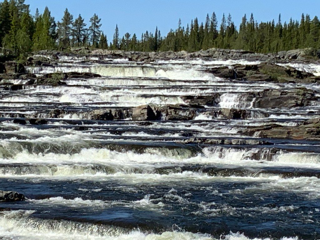 Höjdpunkten på alla utflykter är fikat. Självklart finns det en liten servering alldeles intill forsen. Där kan man koppla av till vattnets brus och inta en nygräddad frasig våffla med hjortronsylt. Detta skogens guld som jag faktiskt är osäker på om den växer utanför Norden. Det blev en härlig utflykt och det var många mer än jag som tagit tillfället i akt att njuta av naturens skönhet denna sommardag.