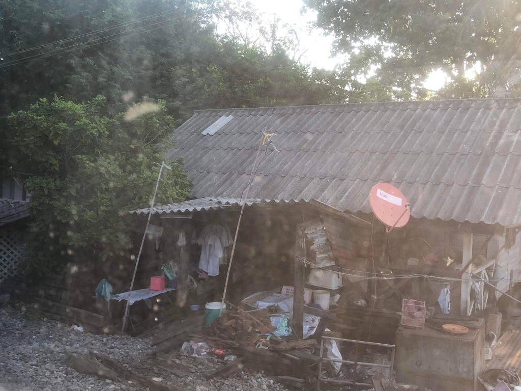 I vanliga fall tar resan 4,5 timma men vi tänkte inte på att man nu dels lägger om en del spår men även bygger nya stationshus vid i princip varje tågstation på sträckan HuayYang Yang- Bangkok. Därför tog resan 6 timmar men det var OK. Tilläggas bör att det är smalspårig järnväg i Thailand vilket faktiskt märks när man åker.