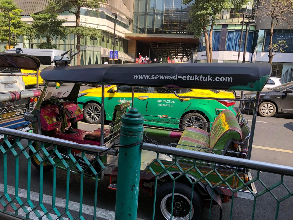 Efter att vi ätit oss mätta så bar det iväg till järnvägsstationen Hualamphong. Den har vi åkt ifrån förut, inte så stor så där är det lätt att hitta rätt spår trots dålig skyltning. Det blev taxi det tog runt 15 minuter med taxi. Transportmedlet TukTuk är till för de som vill leva farligt och verkar som tur är vara på utdöende nu.