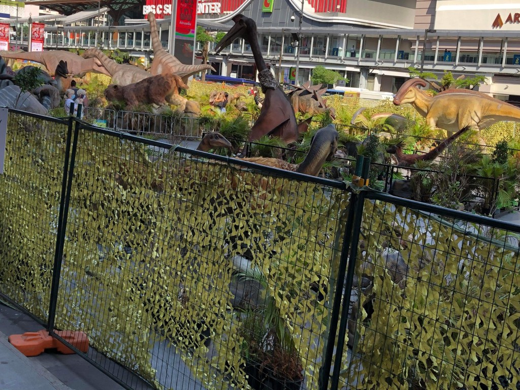 Det fanns några ställen att välja på men det blev det gamla vanliga och vilket är det? Jo Starbuck. På ett ställe såg vi några läckra bakverk typ bakelser. Priset var runt 85kr men smakar det så kostar det. Är dock osäker i det här fallet om det verkligen smakar. Utanför shoppingcentrat var som vanligt någon form utställning oftast för barn. Denna gång handlade det om dinosaurier.