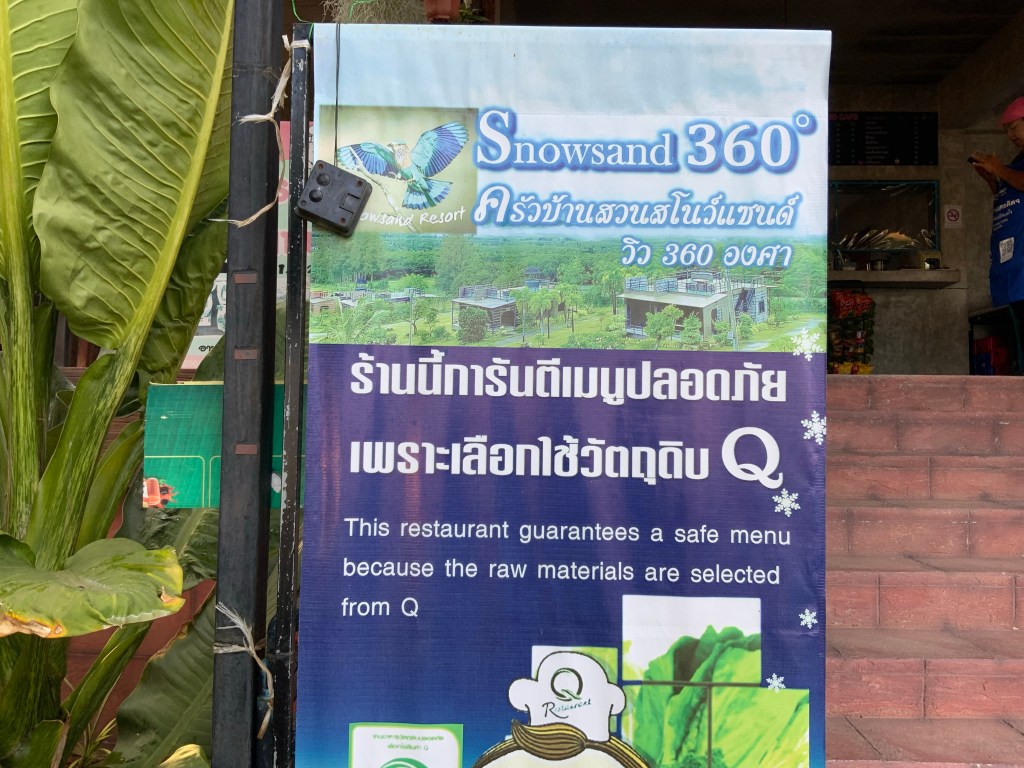 Hörde talas om en för oss okänd restaurang som skulle ligga på andra sidan motorvägen det vill säga Petschkasem road i Huay Yang. Den heter Snowsand men kallas också för 360˚. Eftersom man absolut inte skall korsa motorvägen med en saläng om det inte rent av är förbjudet så finns det bara motorcykel eller bil att välja på.