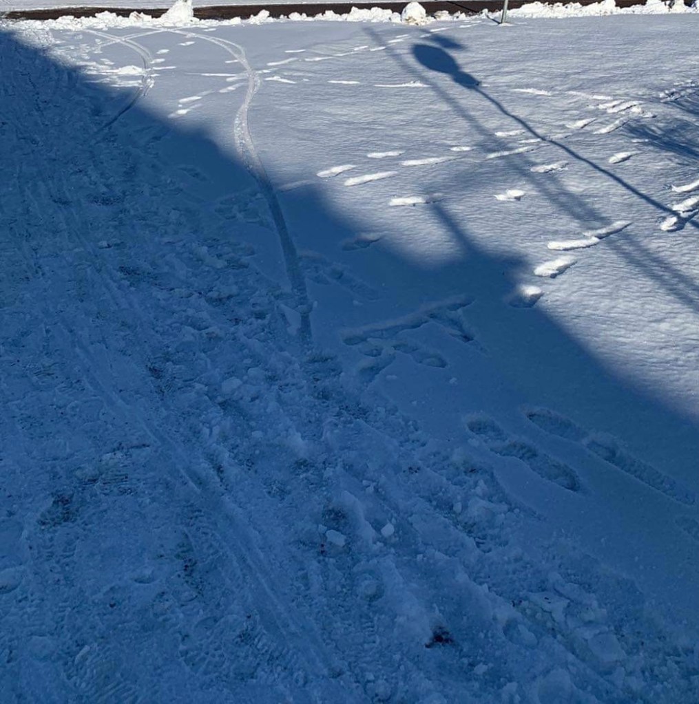 Baksidan av skolan, här syns den långa muren som omger hus o grönområde.