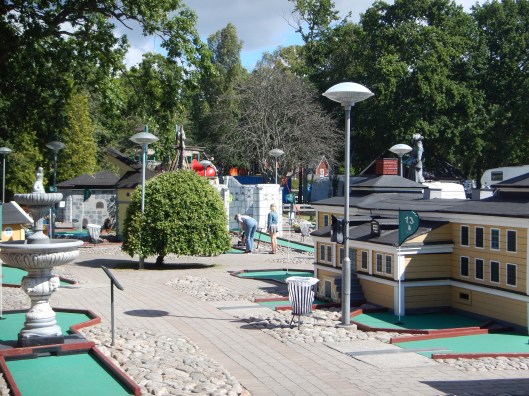 Men vad är detta? Jo det är både förströelse och kultur i ett. En minigolfbana fast kanske inte riktigt mer en äventyrsgolfbana. Här hamnar man mitt inne i Karlskrona fast i miniatyr.